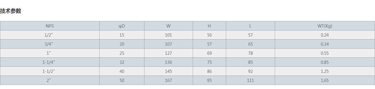 NPS φD W H L WT(Kg)